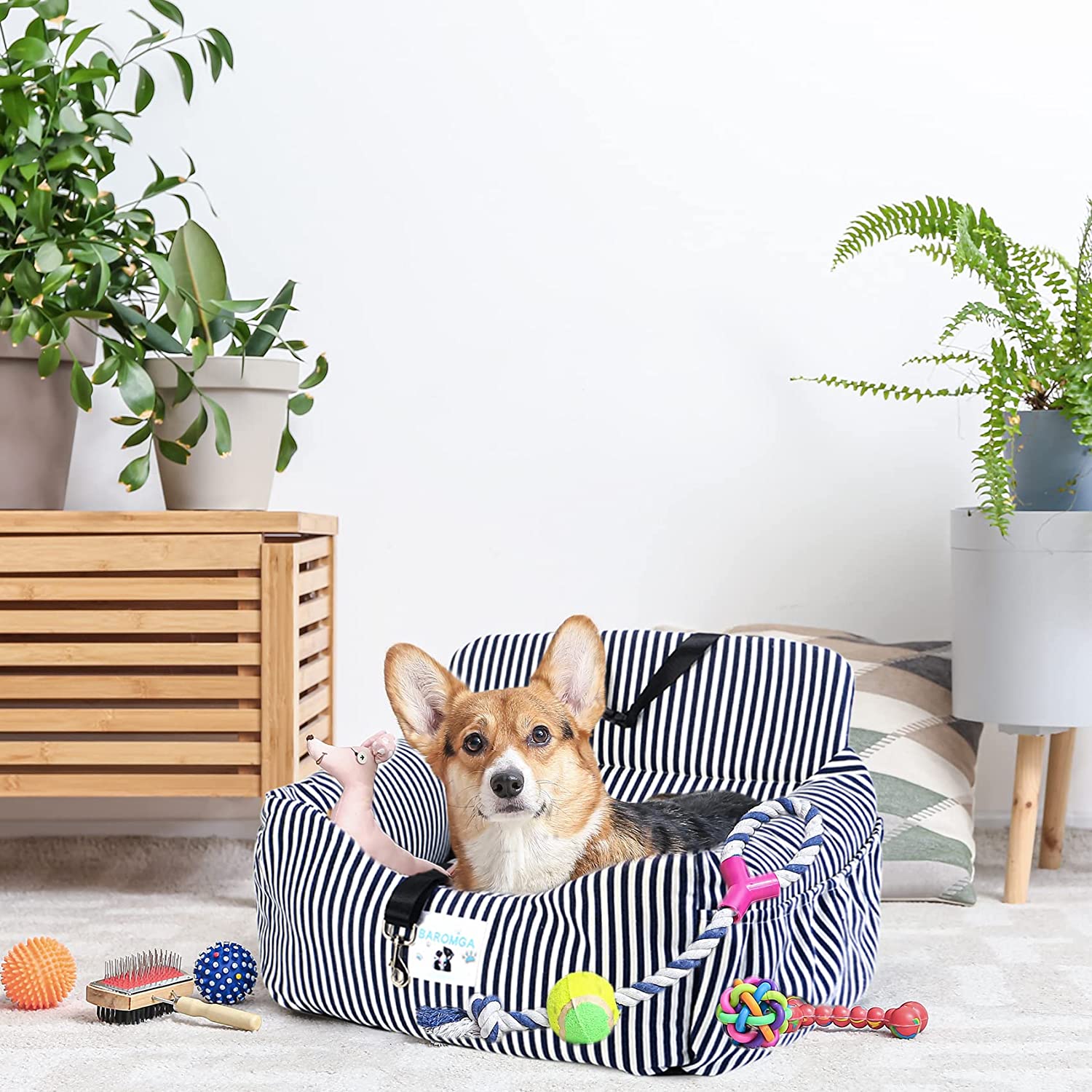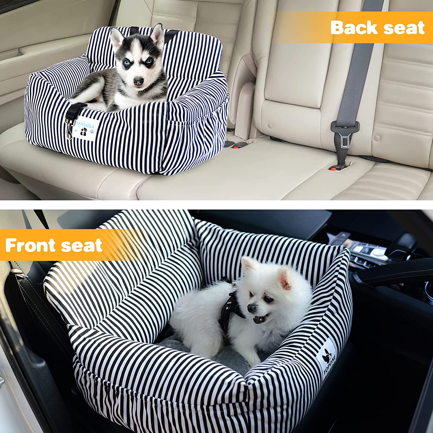 - Produktabmessungen – Haustier-Sitzerhöhung ist 55 x 50 x 30 cm, Reise-Sicherheits-Autositz ist geeignet für kleine bis mittelgroße Haustiere. (bis zu 11,3 kg) Es gibt Taschen an der Seite des Hundesitzes, die Haustiere Spielzeug und Zubehör aufbewahren können! Der Hundesitz hält Ihre Haustiere sicher und sicher, wenn Sie reisen.